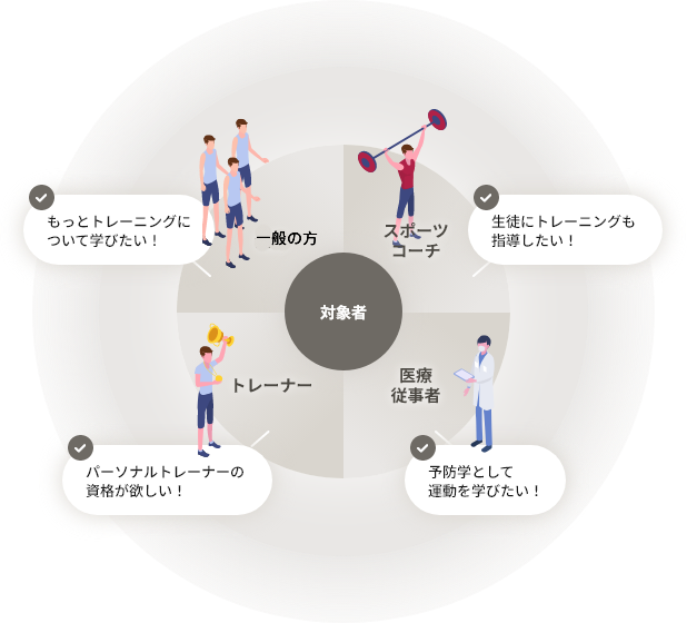 講座受講者はNSCA発行「パーソナルトレーナーのための基礎知識」の書籍をご用意ください。