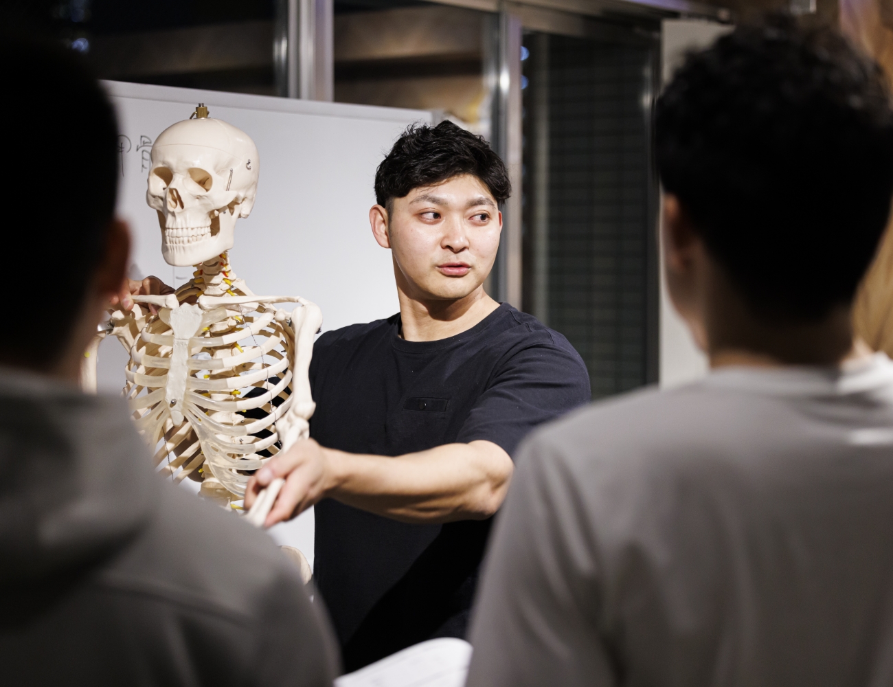 「多くのトレーナースクールはパーソナルトレーナーになることを目的としていることが多いですが、当スクールは「トレー”ニング”スクール」になります。資格取得を通してトレーニングを学びますので、パーソナルトレーナー志望者だけでなく、「トレーニングについてもっと知りたい!」と言う人であれば、どなたでも参加できます。」